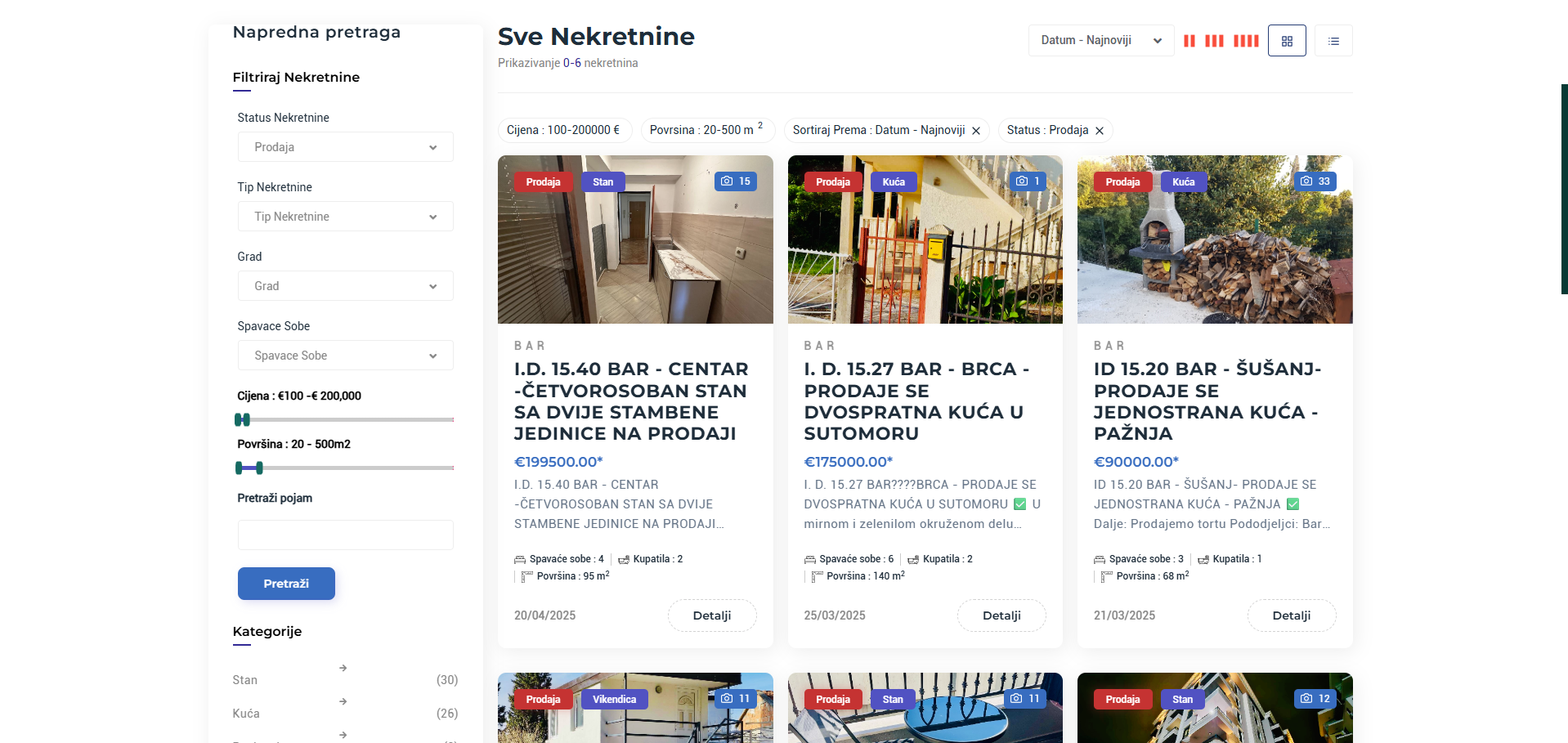 Dizajniran je moderan interfejs sa mapama, galerijama i opcijama za brzo filtriranje. Backend omogućava lako upravljanje sadržajem i automatsko generisanje SEO-friendly URL-ova.
