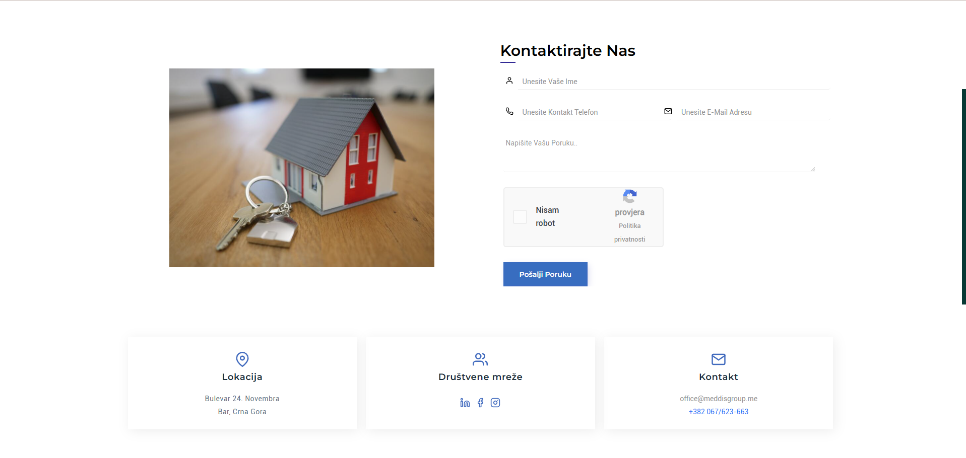 Meddis Nekretnine je savremena platforma za prezentaciju i pretragu nekretnina. Omogućava korisnicima da brzo pronađu stanove, kuće i poslovne prostore prema lokaciji, cijeni i drugim filterima, dok administracija ima jednostavan CMS za upravljanje ponudama.