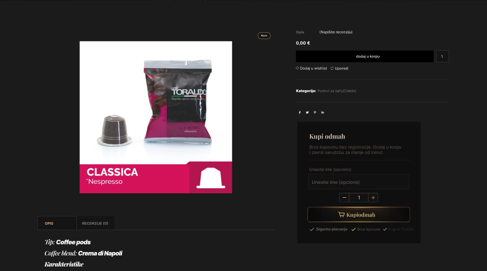 Toraldo Bella Napoli je e-commerce platforma za online prodaju italijanskih proizvoda i gastronomije. Kupci mogu poručivati artikle online, pregledati asortiman, pratiti dostupnost i izvršiti narudžbinu putem integrisanog korpa sistema. Fokus platforme je bio na jednostavnom procesu kupovine, jasnom prikazu proizvoda i automatizaciji narudžbina.